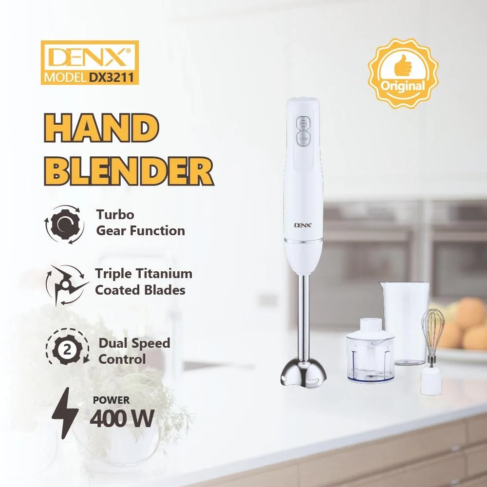 خلاط يدوي DX3211 دينكس 4×1 بقوة 400 واط مع مفرمة وخفاقة وكوب 700 مل