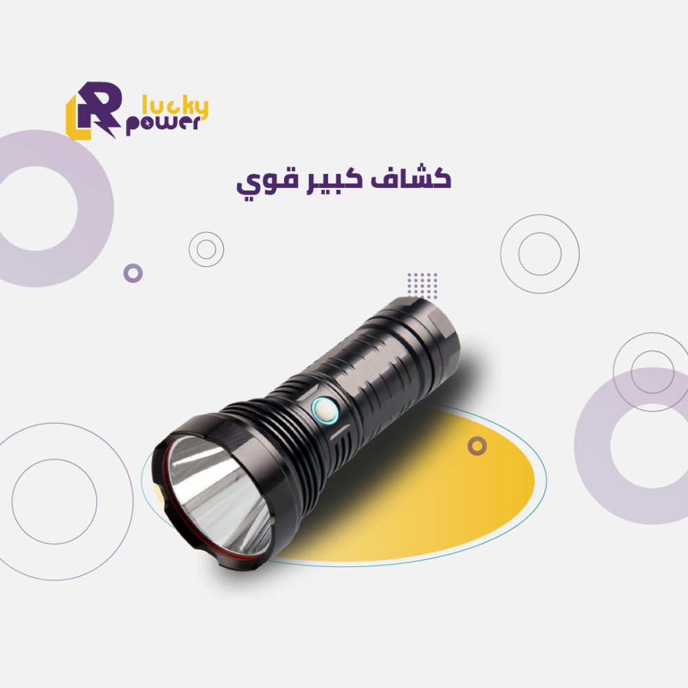 - يحتوي كشاف كبير قوي على مصباح كبير يعمل بقوة، مما يجعله قادرًا على إضاءة مناطق كبيرة بكفاءة عالية.