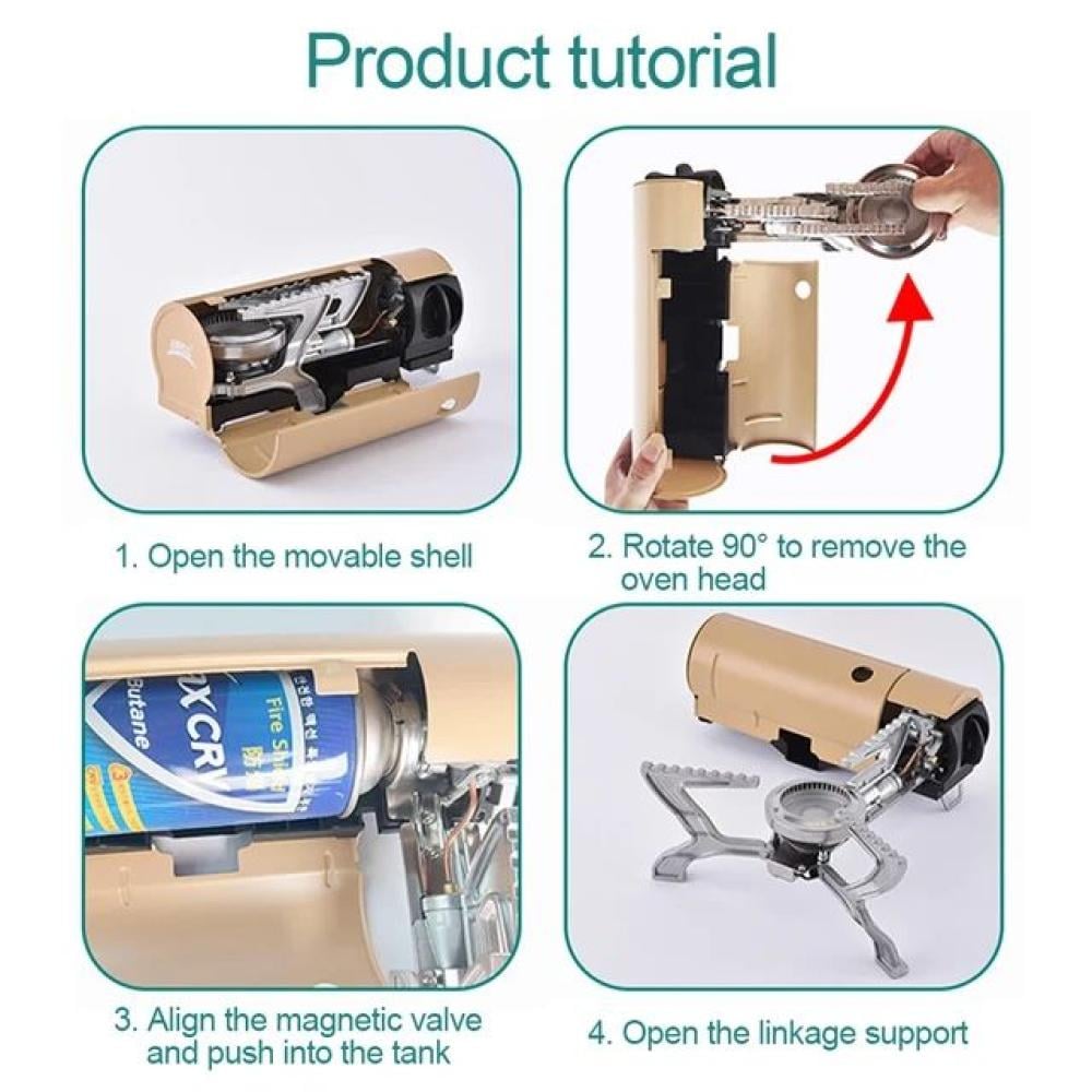 • موقد غاز متنقل للرحلات قابل للطي ومحمول: بفضل تصميمه القابل للطي، يمكنك حمل الموقد بسهولة في حقيبتك أو في السيارة أثناء رحلاتك وتخييمك، مما يجعله ملائمًا للاستخدام في أي مكان.